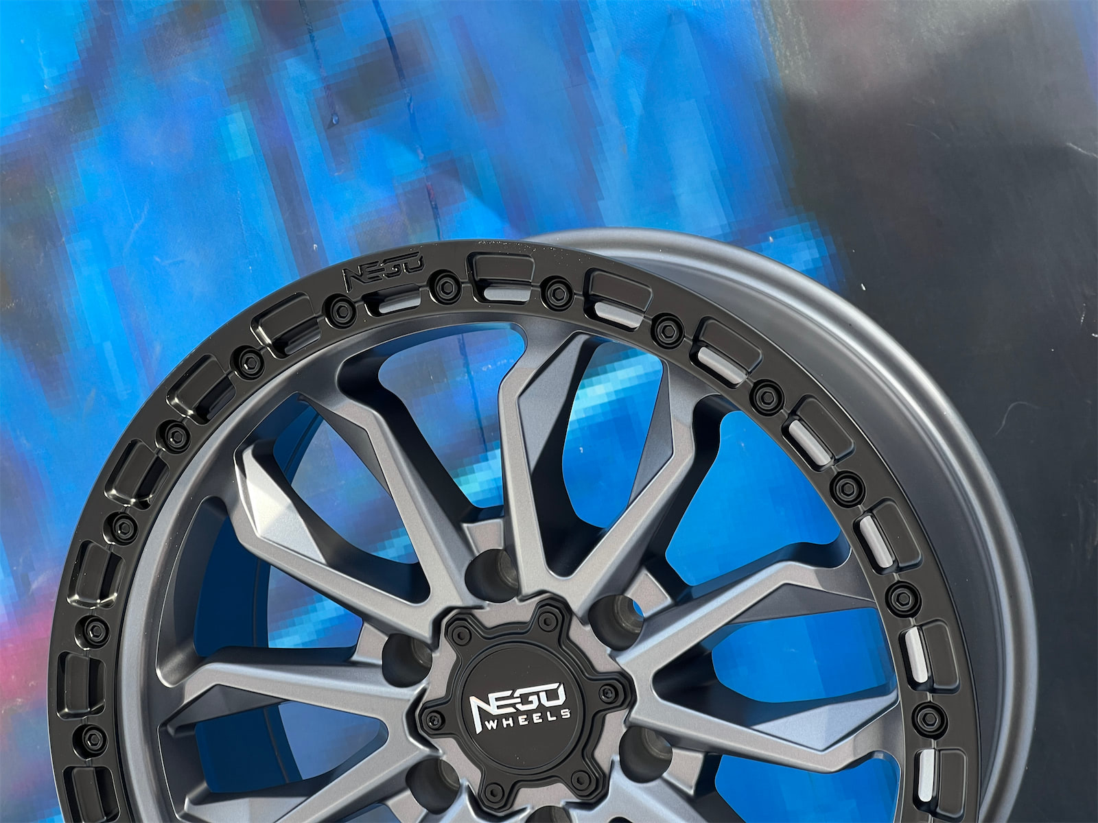 Литой aвтомобильный диск от Negu. Модель N09 в цвете MGM+MBL с шириной диска 8,5, посадочным диаметром 17, количеством отверстий 6, межболтовым расстоянием 139,7, вылетом 0 и диаметром ступицы 100,1.